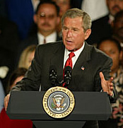 President George W. Bush stressed his continuing efforts to protect Americans from terrorists and strengthen the economy during a visit Aug. 14 at the University of Wisconsin-Milwaukee.