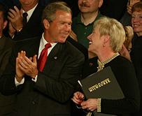 Bush’s visit was the first ever by a sitting president to UWM, the UW System’s urban university. Chancellor Nancy Zimpher welcomed Bush and Wisconsin Gov. Scott McCallum to campus, stressing that UWM is the UW System’s economic engine for southeast Wisconsin.