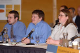 UW-Oshkosh students students Jeremiah Slinde, Brandon Strand, and Amanda Cone speak to the Education Committee